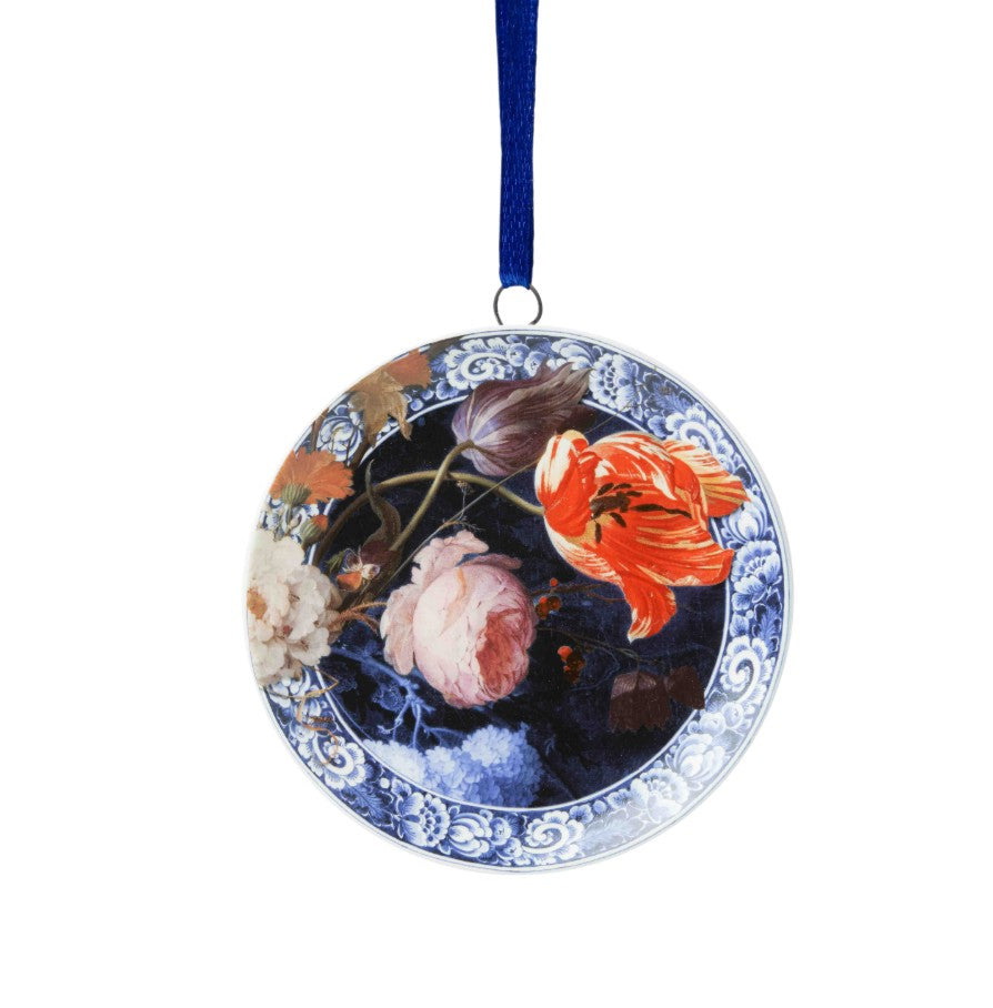 Breng een vleugje kunst en historie in je kerstboom met dit elegante ornament in de vorm van een wandbordje. Het ontwerp is geïnspireerd op de schilderkunst uit de Gouden Eeuw en uitgevoerd in warme oranje tinten die zorgen voor een rijke, sfeervolle uitstraling.