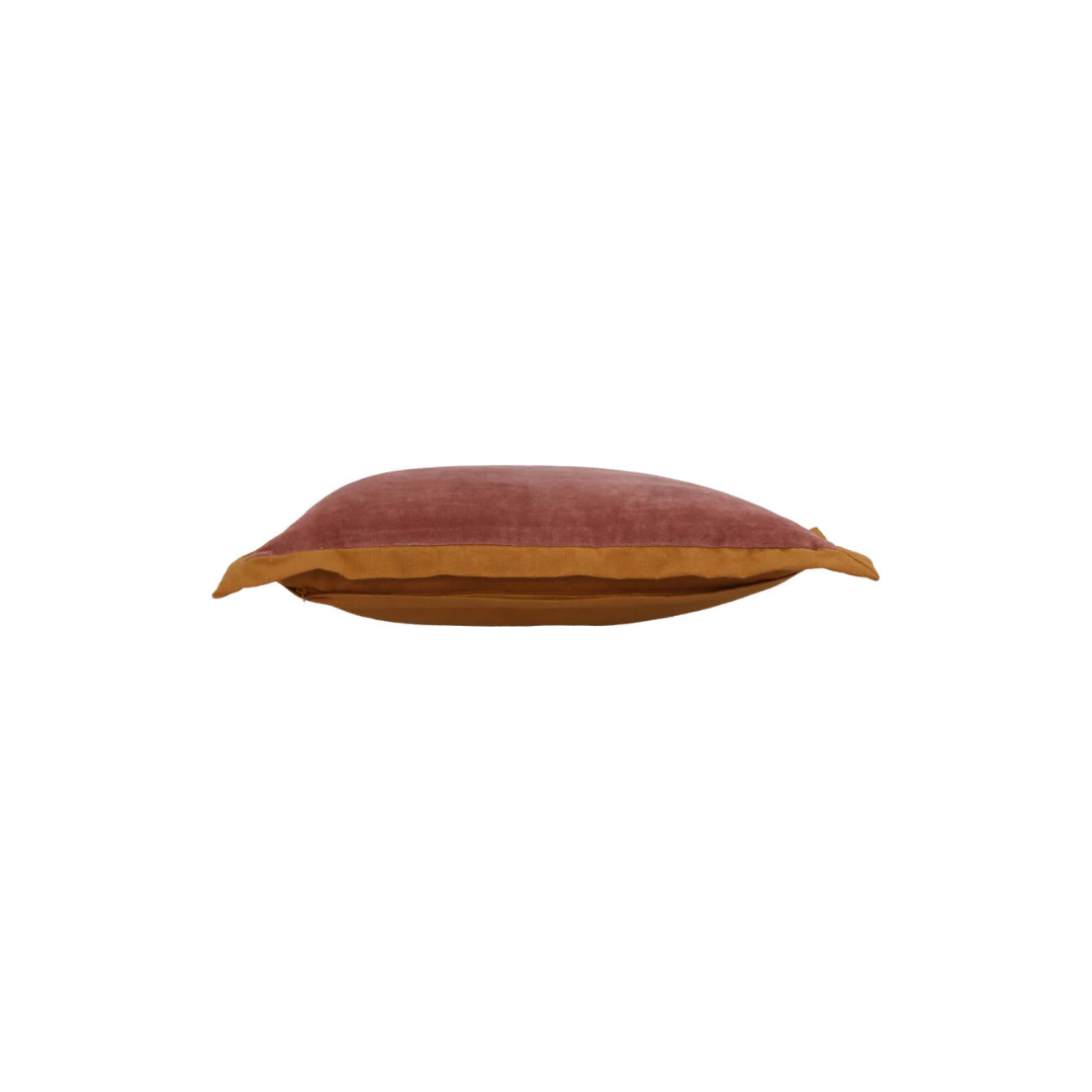 Met de prachtige kleuren oker & oud roze maakt dit kussen iedere ruimte compleet!