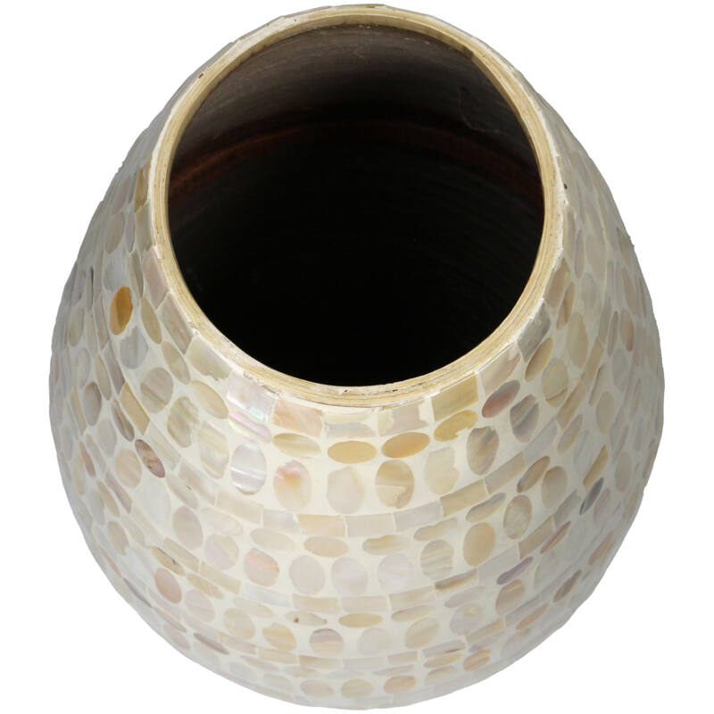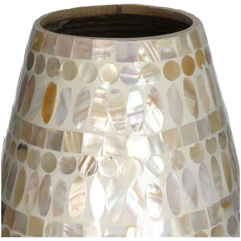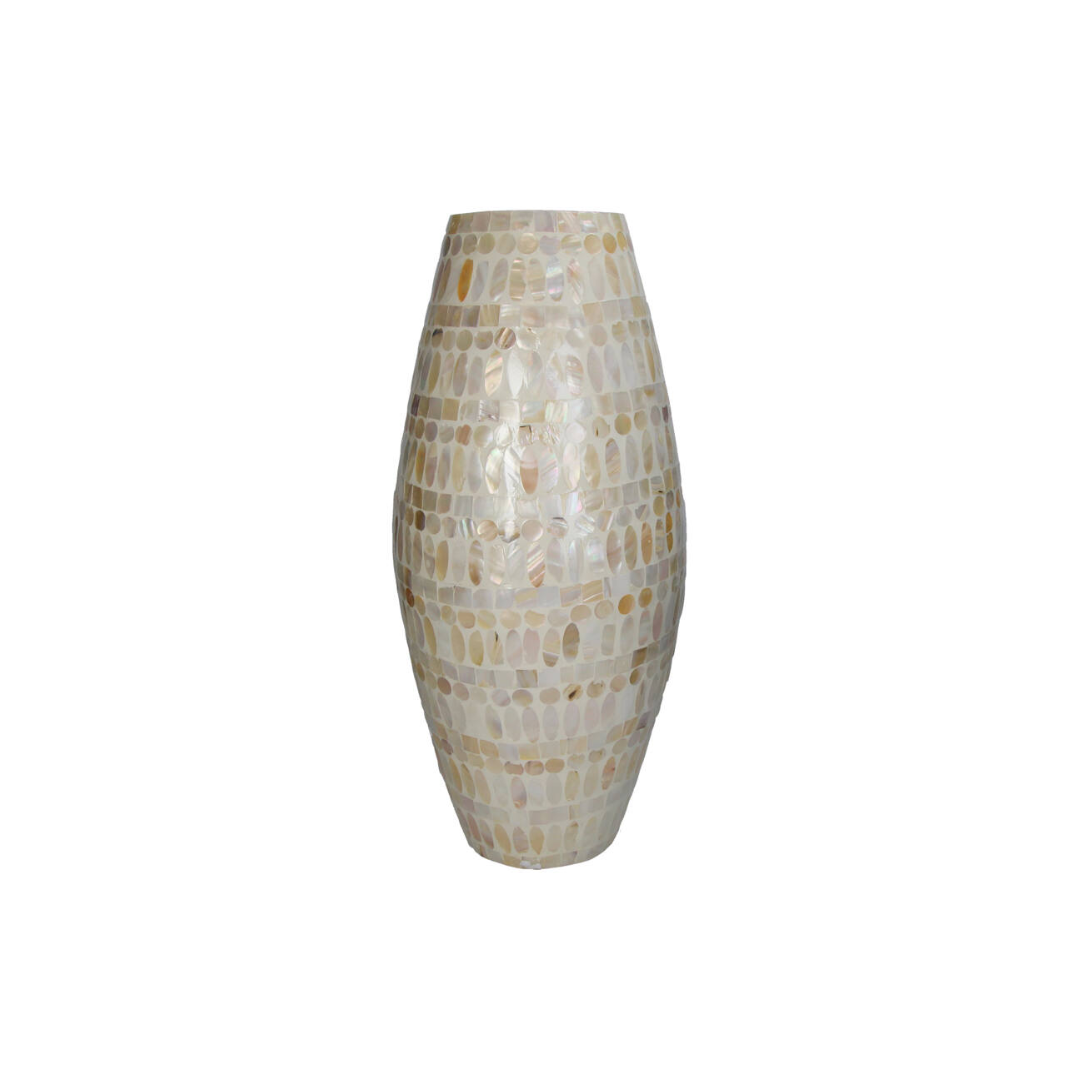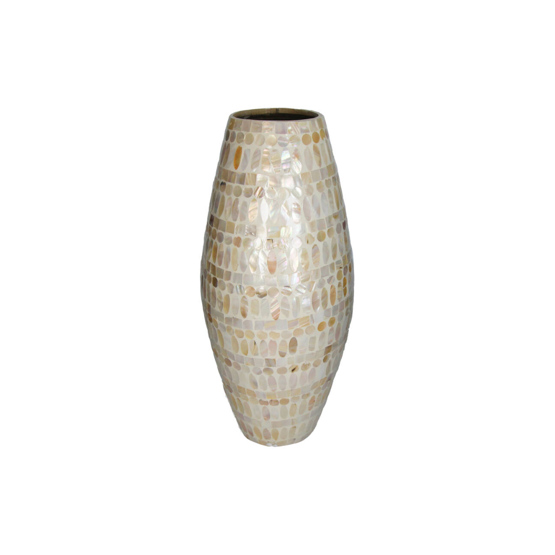 Grote ivoor-kleurige Capiz vaas van 22x22x50cm voor een indrukwekkende decoratie. Deze vaas is niet waterbestendig.