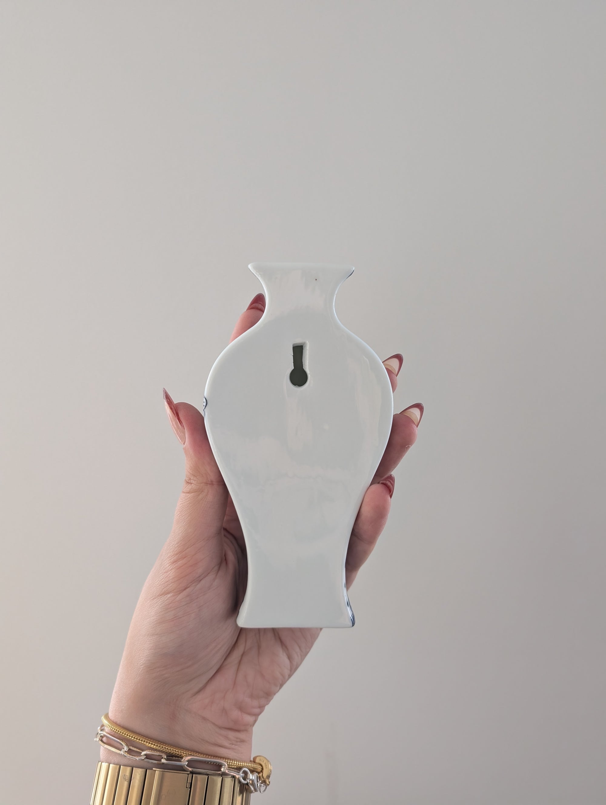 Dit mooie, keramieke vaasje in blauw-wit is eenvoudig aan de wand te monteren door het gaatje aan de achterzijde. Decoreer met een enkele zijden bloem voor een ware eyecatcher. Hoe leuk is dat?