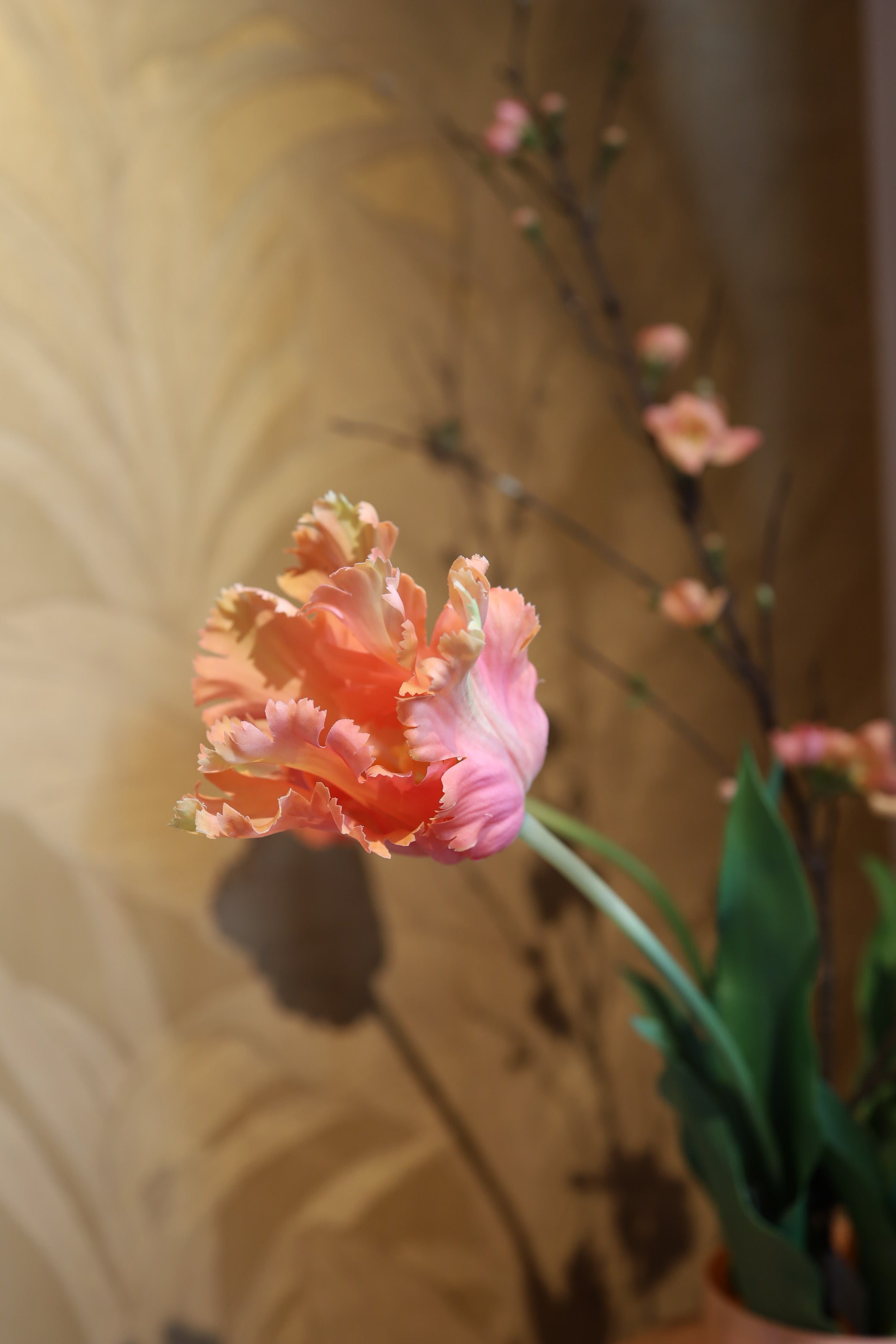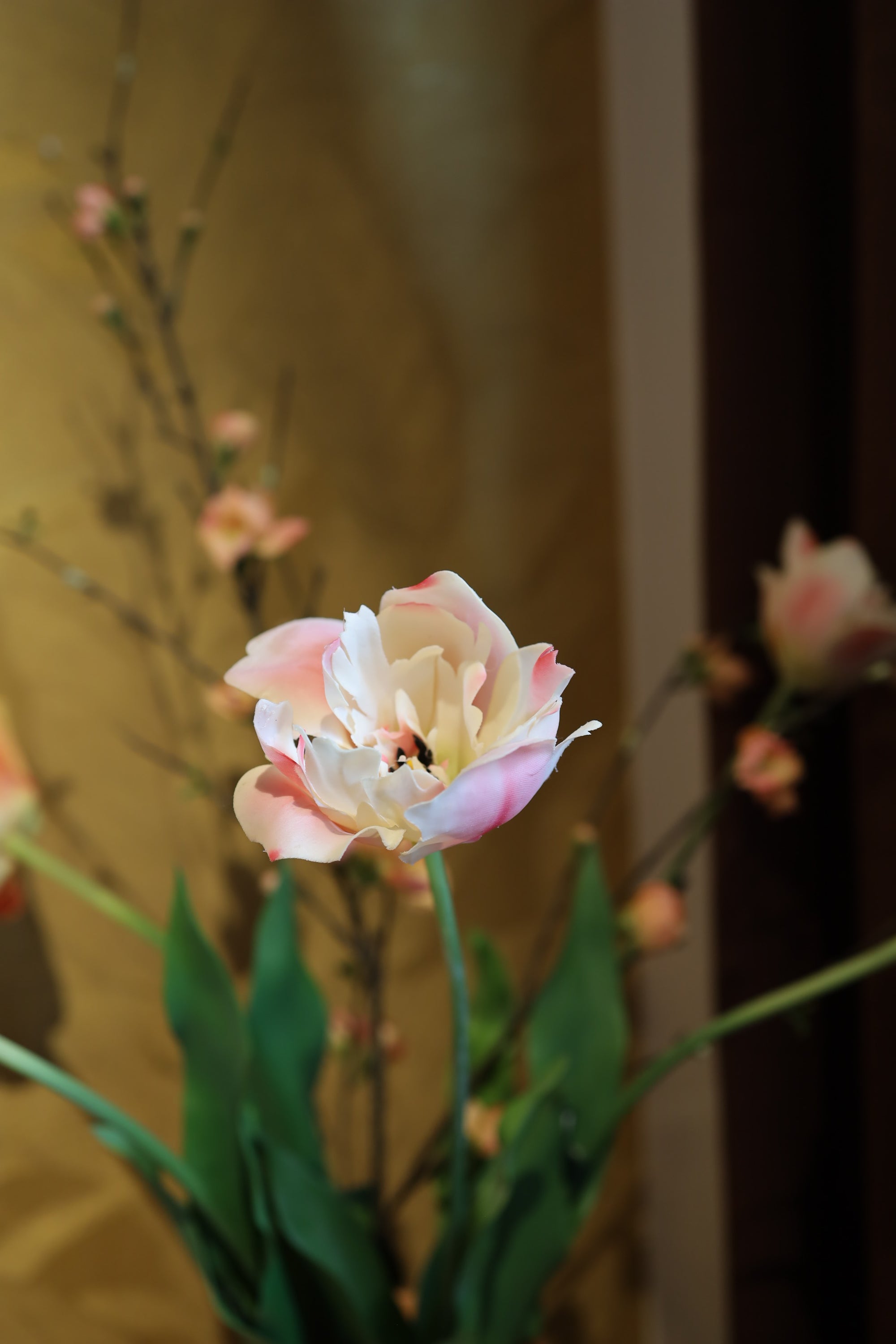 Ontdek ons prachtige boeket van zijden bloemen met real-touch tulpen. Met een verfijnde uitstraling en unieke details brengt dit boeket sfeer en elegantie in elk interieur. Ideaal als duurzaam alternatief voor verse bloemen!