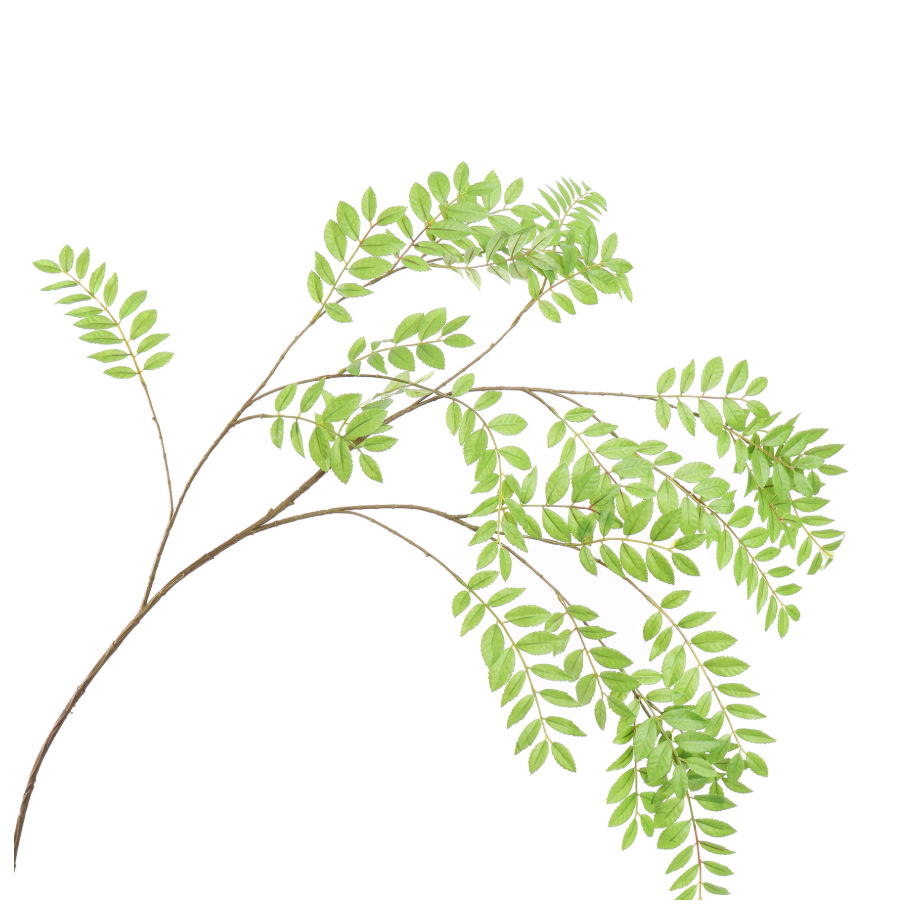 Een prachtige grote zijden Sorbusblad-tak van 140 cm in een frisse groene kleur. Met zijn sierlijke, natuurlijk ogende bladeren is deze tak perfect om een weelderig en volumineus effect toe te voegen aan bloemstukken of als een subtiele decoratie in je interieur. Ideaal voor een botanische en elegante sfeer!